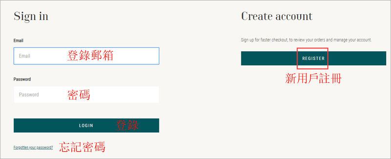 第一步:登錄Crabtree & Evelyn瑰柏翠美國海淘官網,進行賬號登錄或註冊;